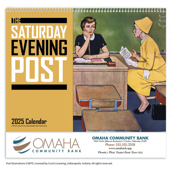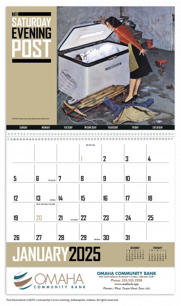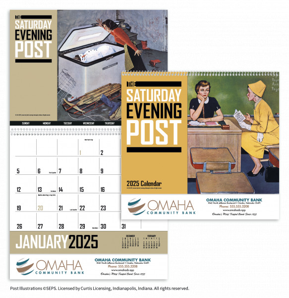 Artwork from one of the most popular magazines of all times, The Saturday Evening Post, is featured on this calendar.