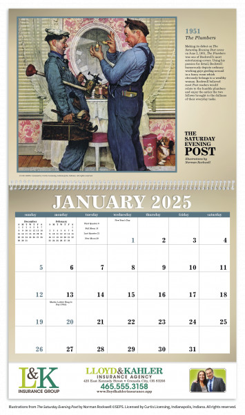 The Saturday Evening Post Illustrations by Norman Rockwell. Give your customers a touch of nostalgia with historic Rockwell images and a classic calendar design.