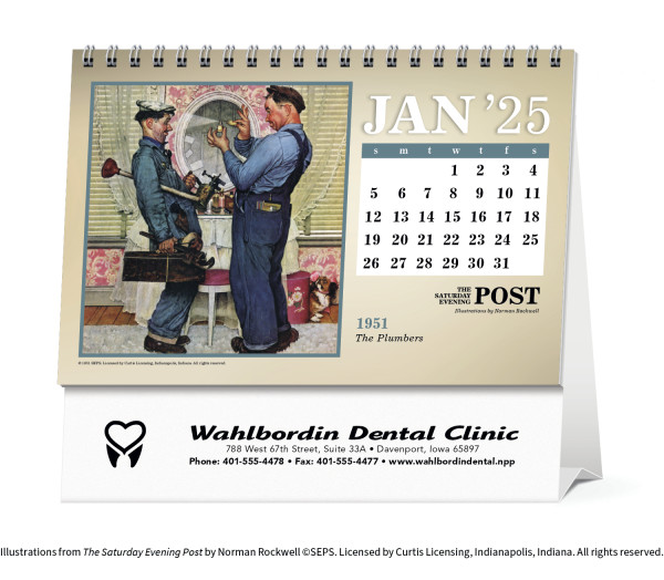 The Saturday Evening Post Illustrations by Norman Rockwell Large Desk. With desktop display calendars, the message is kept in front of customers every day of the year. This handsome display of American masterpieces is sure to be appreciated.
