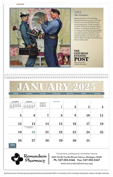 The Saturday Evening Post Illustrations by Norman Rockwell - Handi Pocket. This pocket calendar stands out, thanks to incomparable art from an American legend. The pocket feature adds to the value and usefulness of this lovely calendar.