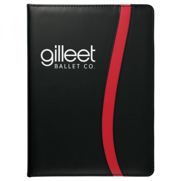 Portfolio has file pocket, card slots and pen slots. Notepad included. Pen not included.