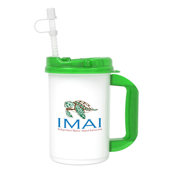 - Snap-On, Spill-Resistant Drink-Through Swivel Lid With Flexible Corrugated Straw With A Cap To Provide Multiple Drinking Options