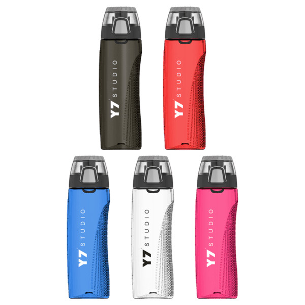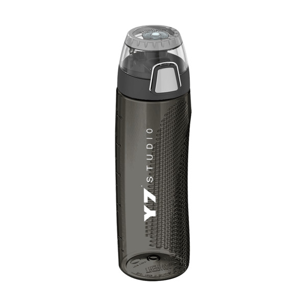 Stay on top of your hydration goals with this sleek 24 oz Tritan™ bottle featuring a rotating intake meter that helps you monitor your water intake throughout the day. With its ergonomic grip, flip-up lid, locking ring, and carry loop, it’s built for active use—and as a promotional product, it can be custom-decorated or branded to carry your message wherever it goes.