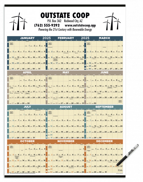 This multi-purpose calendar features a write-on, wipe-off UV-laminate surface with a marker.