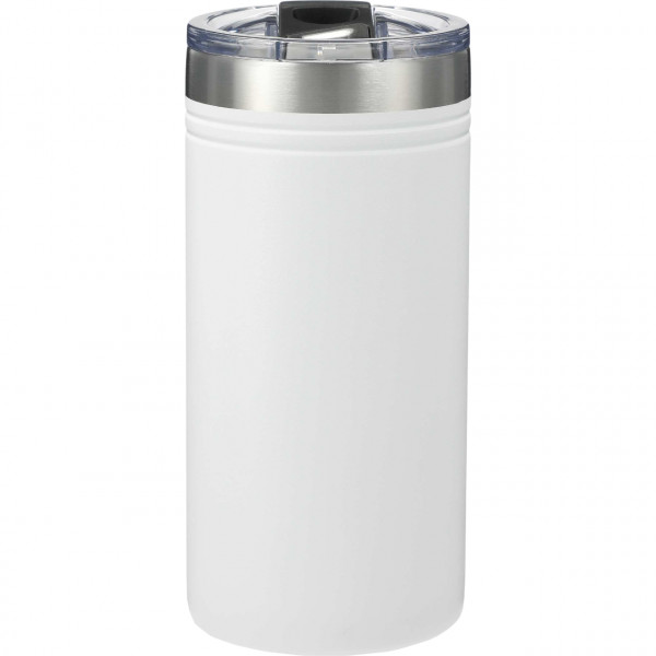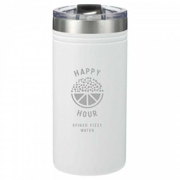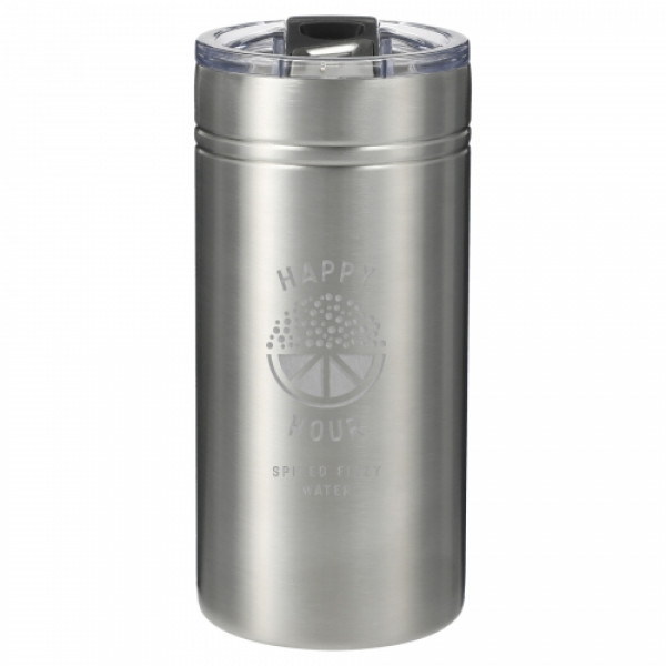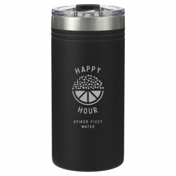 Enjoy the best of both worlds with this dual-purpose thermal cooler that functions as both a slim can holder and a tumbler. Whether you're sipping from the push-on lid with slide closure or keeping your favorite slim can chilled, the double-wall stainless steel construction with copper vacuum insulation ensures optimal temperature retention—cold for up to 24 hours or hot for 8. With a sleek, slim profile and durable powder-coated finish, this is a stylish and functional promotional product ready to be custom branded for your next campaign.