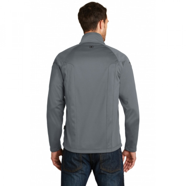 The next generation of Torque is designed with sleek, technical seaming and welding details. It also offers very good water protection.::100% poly interlock bonded to 6.5-ounce, 100% poly microfleece::3000MM fabric waterproof rating::3000G/M2 fabric breathability rating::Contrast color inner fleece::Zip-through cadet collar::O heat transfer at center back::Welding details on sleeves::Welding at right chest pocket with black matte O zipper pull::Reverse coil zipper with rubber OGIO zipper pull::Open cuffs::OGIO woven badge on left side seam::Open hem