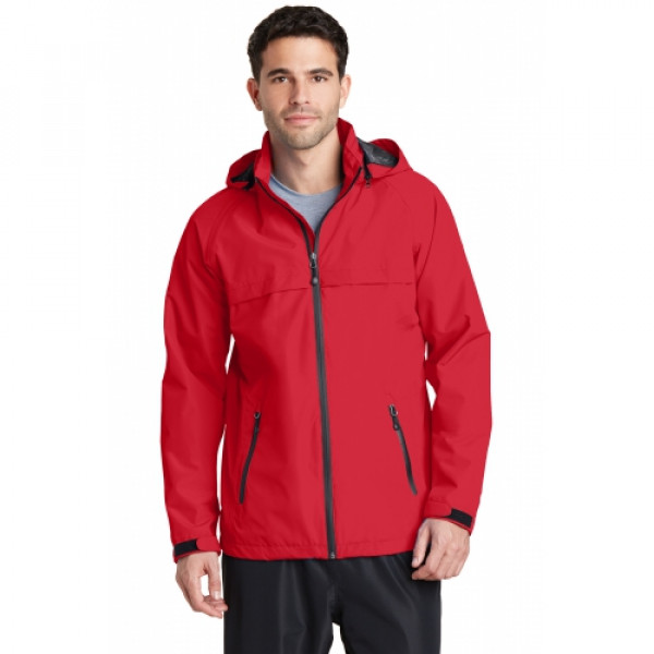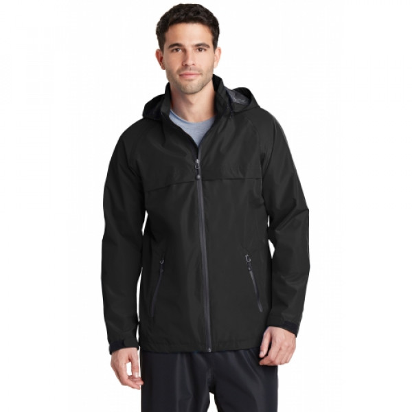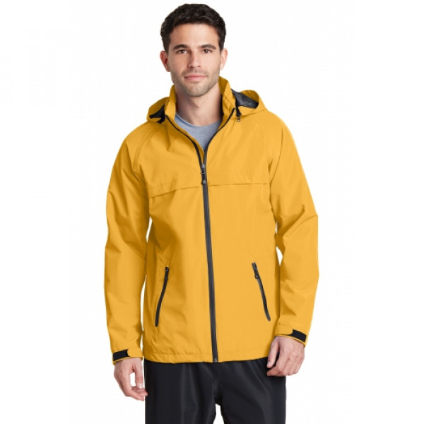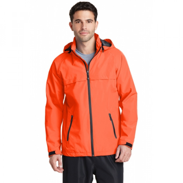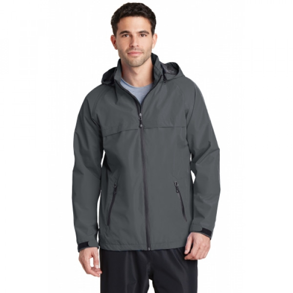 Our versatile, fully seam-sealed jacket offers outstanding waterproof protection to keep you dry whether you're on the job or on the trail. Folds into a convenient carry pouch for easy, compact storage.::100% polyester::100% polyester mesh-lined body and hood::5000MM fabric waterproof rating::1000G/M2 fabric breathability rating::Zip-off hood::Contrast waterproof zippers::Adjustable self-fabric tab cuffs with hook and loop closures::Front zippered pockets::Port Pocket™ for easy embroidery access::Open hem with locking drawcord::Drawstring carry pouch included