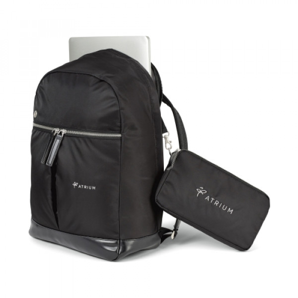This modern women’s backpack combines elegance and functionality, making it an ideal choice for both business and casual settings. Designed with thoughtful organization and a padded, quilted laptop compartment, it offers secure storage for daily essentials. The removable zippered pouch adds versatility as an interior organizer or a grab-and-go accessory, while premium padded straps and a trolley strap make commuting or traveling effortless. It also serves as a stylish promotional product that can be custom branded to showcase your company logo.