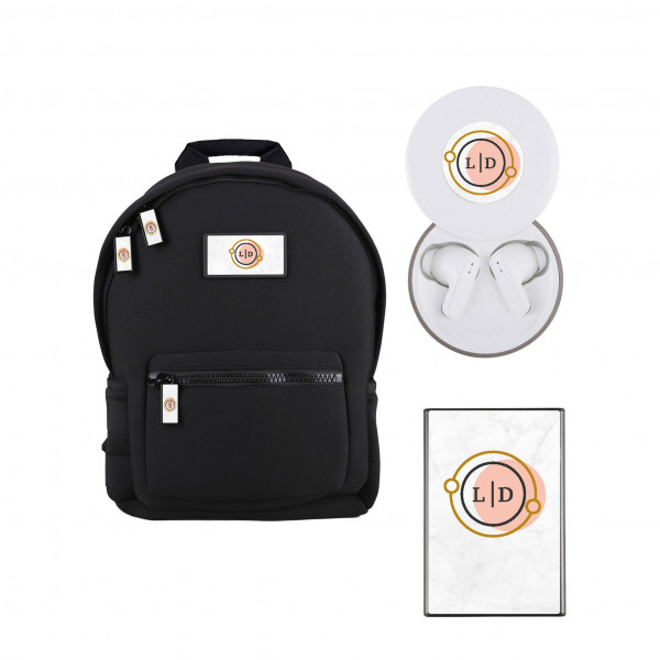 Stay on top of your game with the Trendsetter Kit, a perfect blend of style and functionality. This kit includes the Soho Elizabeth Small Backpack, the Slim Wireless Power Bank, and the Chromeo Wireless Earbuds and Wireless Charger, all designed to keep you looking sharp and your devices charged while on the go. The Soho Elizabeth Backpack is sleek and compact, making it ideal for city adventures. The Slim Wireless Power Bank ensures you never run out of power with its quick 5W magnetic charging, and the Chromeo Wireless Earbuds provide premium sound while wirelessly charging your devices. Whether you're running errands or heading to a meeting, this kit has you covered.