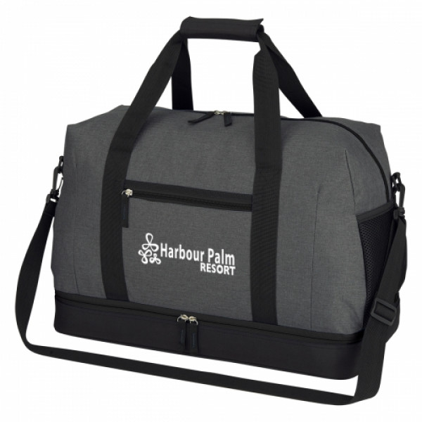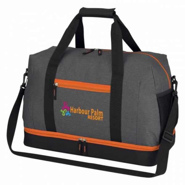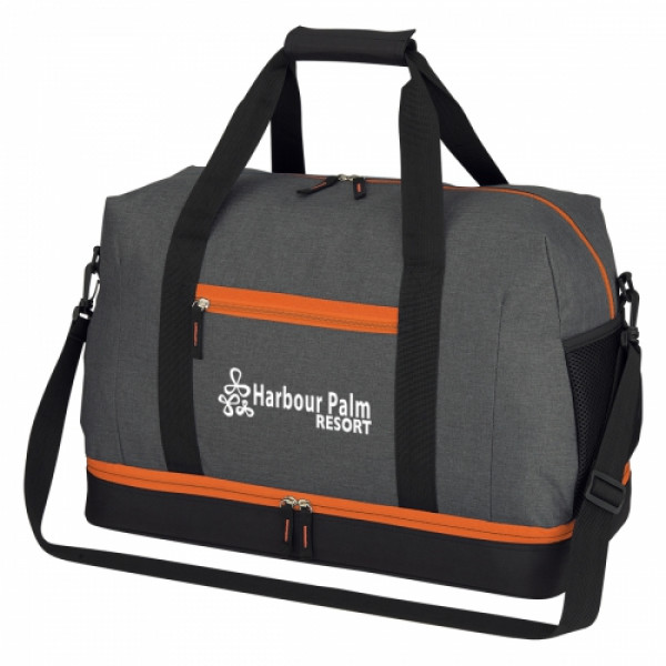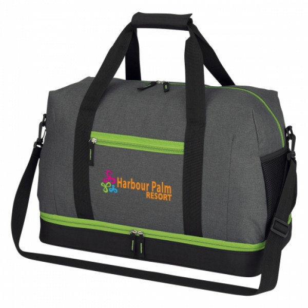 ::Made Of Combo: 600D Polyester And 300D Polyester With 210D Polyester Lining And Polyethylene Foam::Detachable/Adjustable Shoulder Strap And Web Carrying Handles With Hook And Loop ::Closure Comfort Grip::Double Zippered Main Compartment::Double Zippered Drop-Bottom Compartment::Front Zippered Pocket::Side Mesh Pocket::Spot Clean/Air Dry