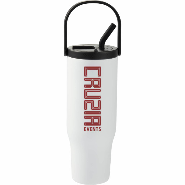 Stay hydrated on the go with this 30 oz leakproof straw tumbler, crafted from 91% post-consumer recycled stainless steel. Its double-wall vacuum construction with copper insulation keeps drinks cold for up to 48 hours while preventing condensation. With an ergonomic handle, flexible straw, and stylish powder-coated finish, this tumbler is perfect for daily use or travel. As a promotional product, it can be custom decorated or branded to showcase your message while supporting eco-friendly initiatives.