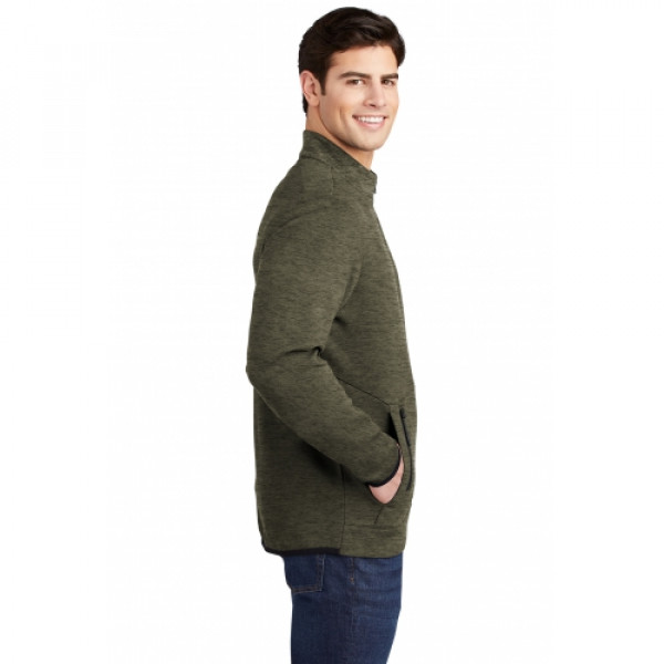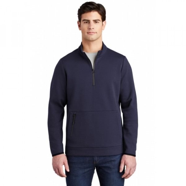 This double knit, cotton-rich pullover is a triumph with integrated pockets and rubberized zippers for a modern look and feel. ::71/29 cotton/poly double-knit fleece::Cadet collar::Tag-free label::Rubberized center front zipper::Front pouch pocket with integrated rubberized zippered pocket