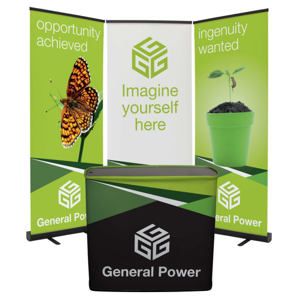 This portable promotional display package is designed to deliver big brand impact in compact spaces, making it ideal for trade shows, events, retail promotions, and presentations. With multiple display pieces and a convenient carrying case that converts into a podium, it offers a professional custom branded setup that is easy to transport and assemble.