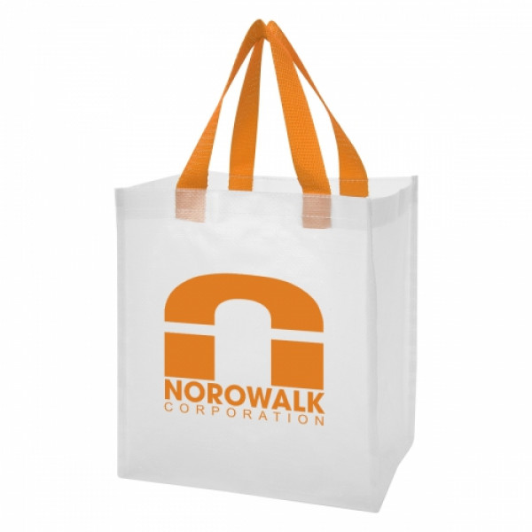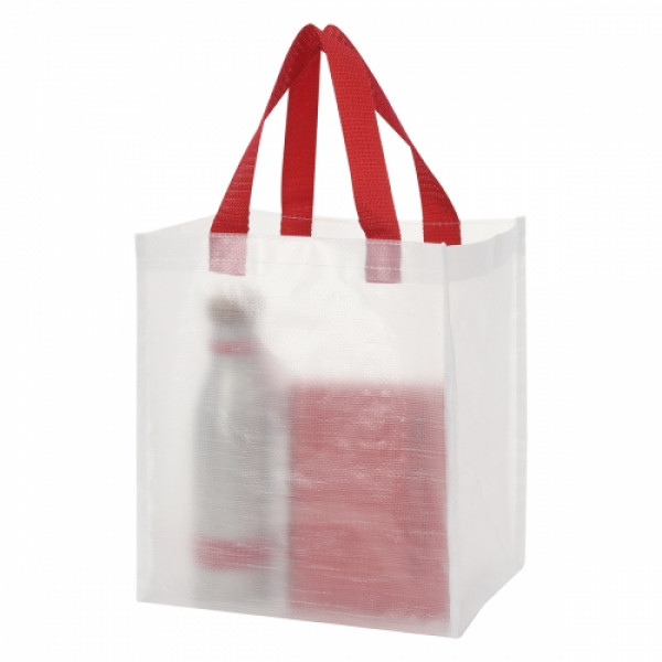 ::Made of Woven Polypropylene::7 ½" Gusset::14 ½" Handles::Spot Clean/Air Dry