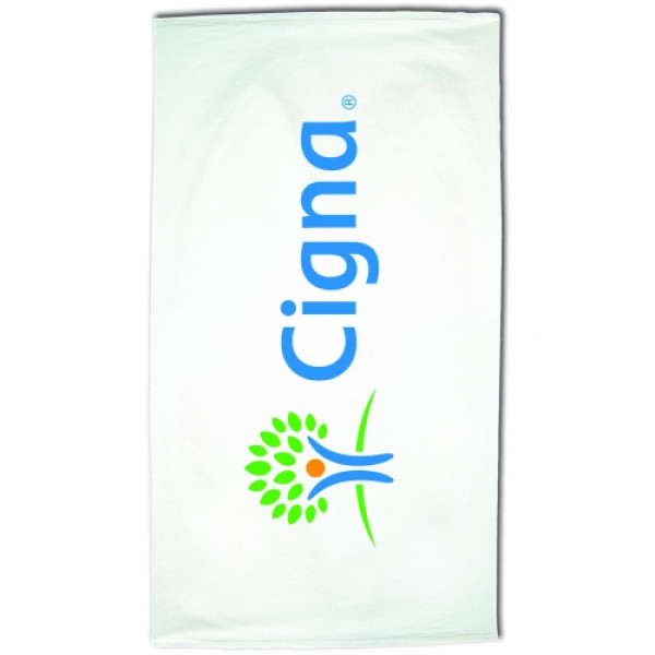 Made in Turkey, this is simply the heaviest, high quality white deluxe beach towel available. Features optical brightening, patterned dobby borders, and double shearing for a softer hand and an unsurpassed imprint. When only the best will do. 40" x 70", 24 lbs./doz.