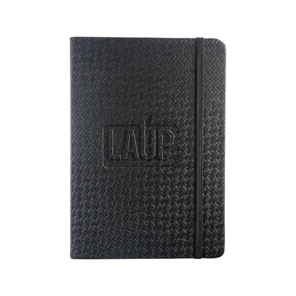 This textured hardcover journal is a versatile promotional product that can be custom, decorated, or branded for corporate gifts, events, or personal use. Its durable faux leather cover, elastic loop closure, and built-in bookmark make it perfect for daily notes, planning, or journaling, while the inside back pocket provides extra functionality for storing documents.
