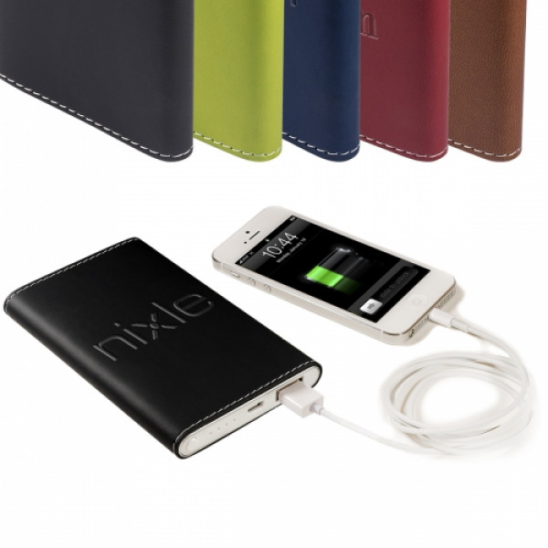 ::Slim aluminum power bank emergency battery charger with soft-PU leather-like accent wrap body. ::Portable device allows you to charge your devices on-the-go::Sleek design with a power button::Capacity: 4000mAh::A power bank typically retains 80-90%