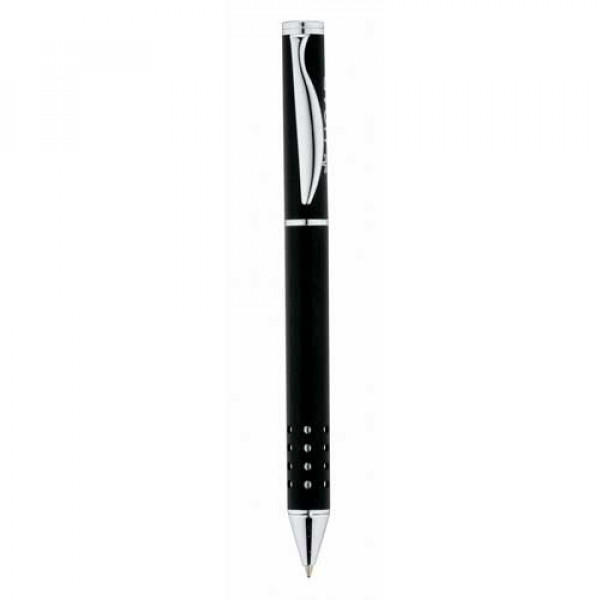 Exclusive Leed's design. Unique brass barrel cutouts reveal high shine chrome accents. Pen includes premium black ink cartridge. Laser 360 is available on this style.