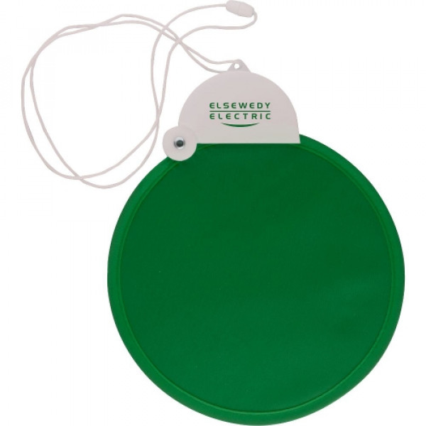 ::When opened, it is a durable hand held fan::Twist to close for easy storage in purses or pockets::Great fundraiser: low cost, high perceived value::Perfect for outdoor events including concerts, sporting events, and county fairs::Prop 65 Compliant::20" Carrying strap included::Beat the heat with this unique and useful promotional product