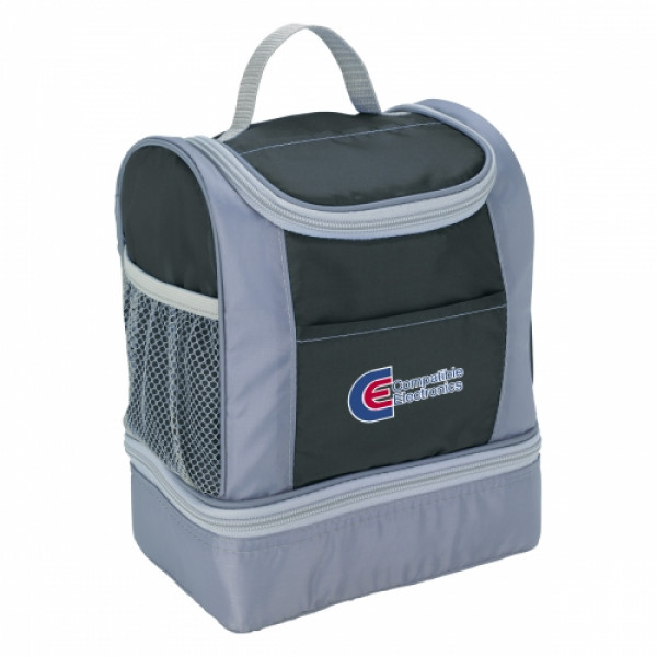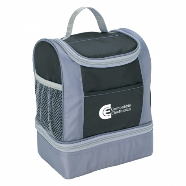 ::Made Of 210D Polyester::PEVA Lining::Web Carrying Handle::Side Mesh Pocket::2 Front Pockets::2 Separate Insulated Compartments::Zippered Upper And Lower Compartments::Spot Clean/Air Dry