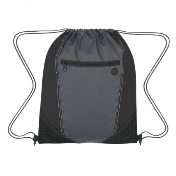 ::Made Of Combo: 600D And 210D Polyester With Padded Mesh Trim::Front Zippered Pocket::Built-In Slot For Earbuds::Drawstring Closure::Spot Clean/Air Dry