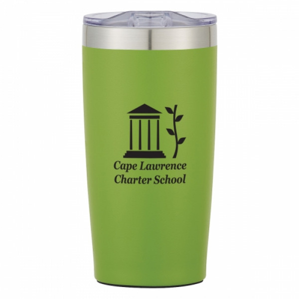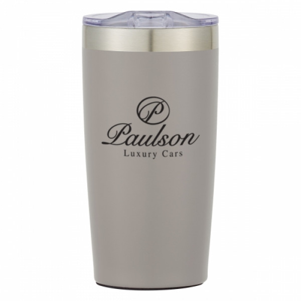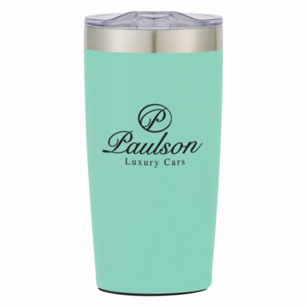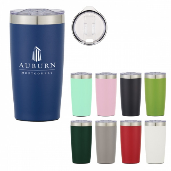 ::Stainless Steel Outer With Powder Coated Finish And Stainless Steel Inner::Double Wall Construction For Insulation Of Hot Or Cold Liquids::Snap-On, Spill-Resistant Thumb-Slide Lid With Rubber Gasket::Due To Vacuum Insulation Technology, Capacity Is 18 Oz. With Lid On::Keeps Drinks Hot Or Cold Up To 6 Hours::Non-Slip Bottom::Meets FDA Requirements::BPA Free::Hand Wash Recommended