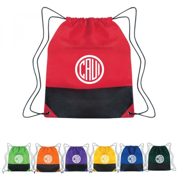 ::Made Of 110 Gram, Non-Woven, Coated Water-Resistant Polypropylene::Outside Pocket::Reinforced Eyelets::Drawstring Closure