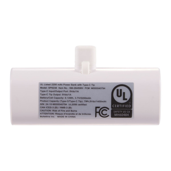 The UL Listed 2,200 mAh Power Bank with Type-C Tip is a compact and reliable solution for charging smartphones and other compatible devices on the go. Its built-in Type-C tip allows for direct charging of iPhone 15 series and Android phones without the need for extra cables, making it a smart and practical promotional product that can be custom branded for tech-savvy audiences. With UL certification and efficient charging capabilities, it’s ideal for everyday use or as a handy backup power source.