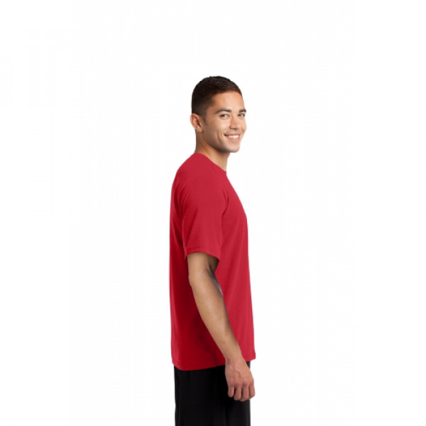 Offer more than a T with the Sport-tek Ultimate Performance Crew shirt. It features raglan sleeves in a soft poly-spandex fabric that keeps the sweat away.::Tag-free transfer label ::Loose athletic fit ::Double-needle stitching throughout