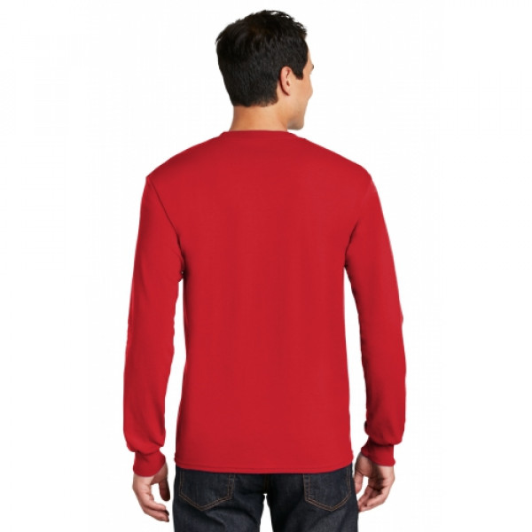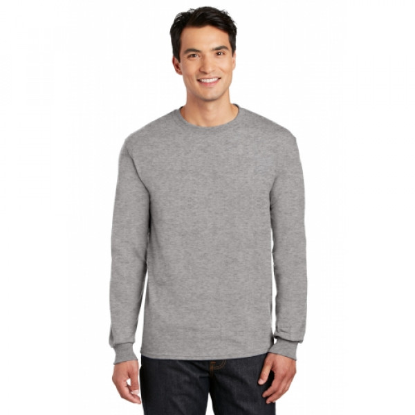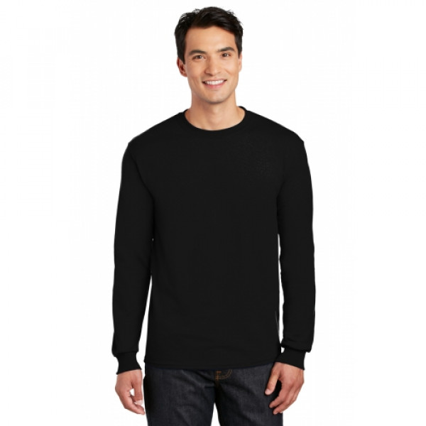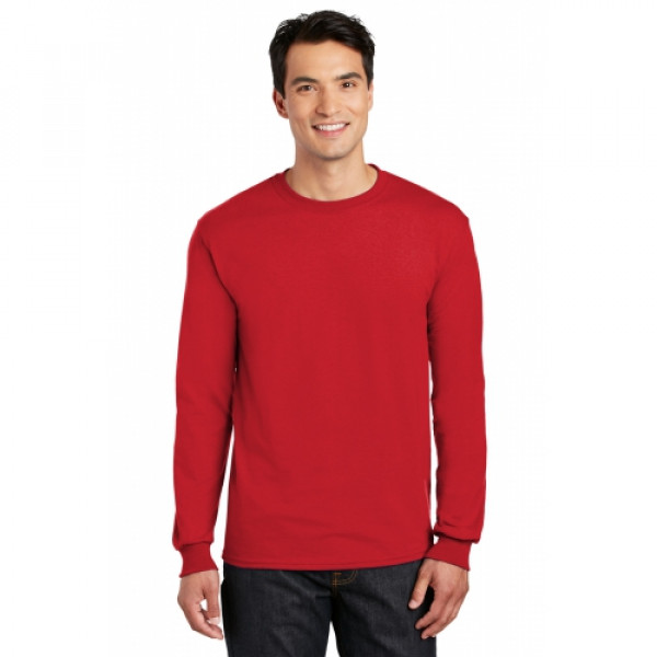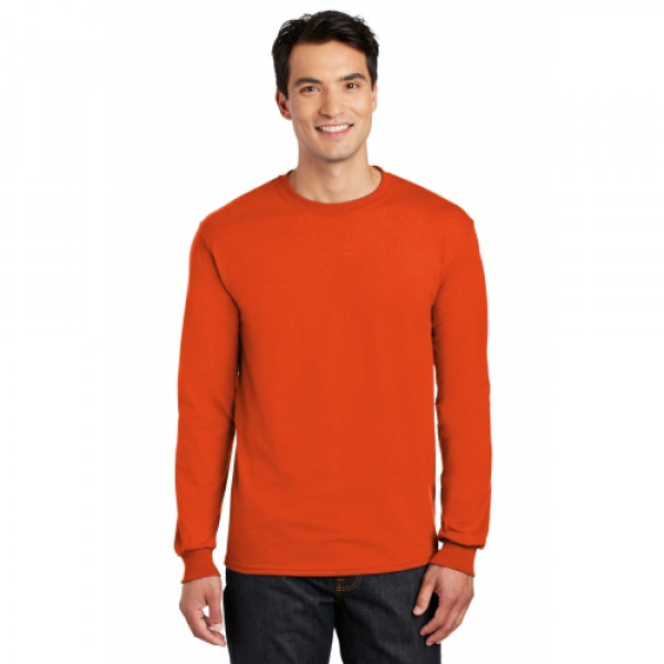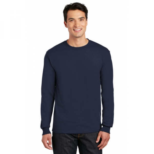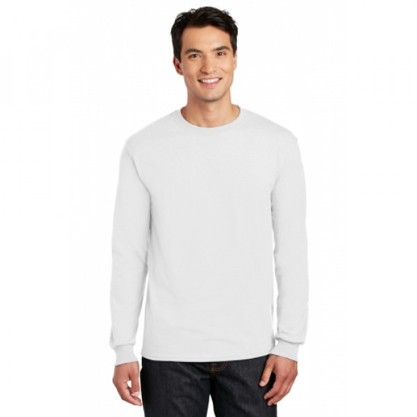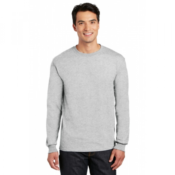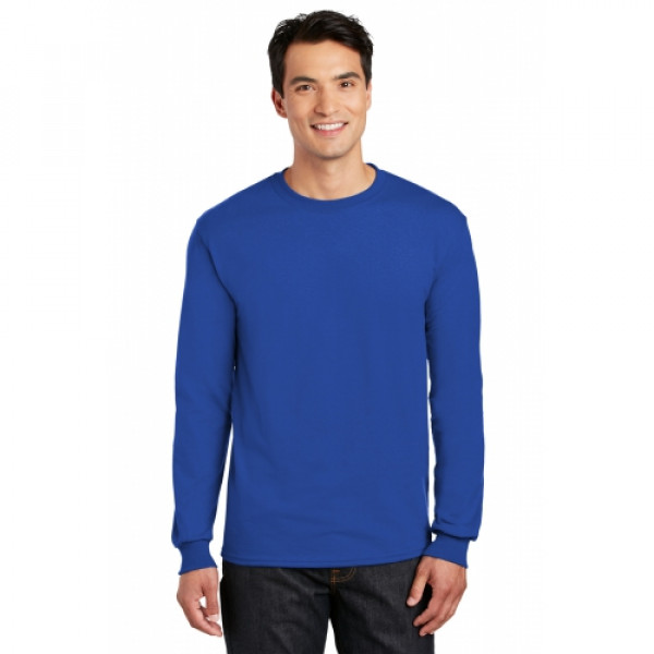 Gildan Ultra Blend 50/50 Cotton/Poly Long Sleeve T-Shirt ::5.6-ounce ::50/50 cotton/poly ::Double-needle stitching ::Taped neck and shoulders