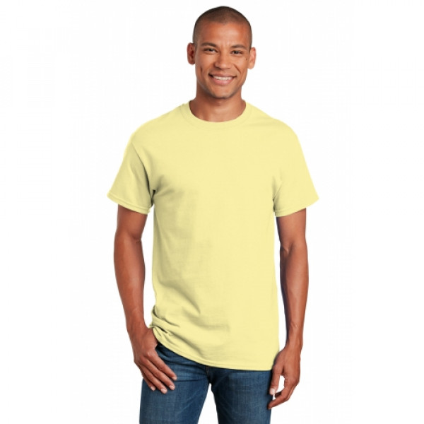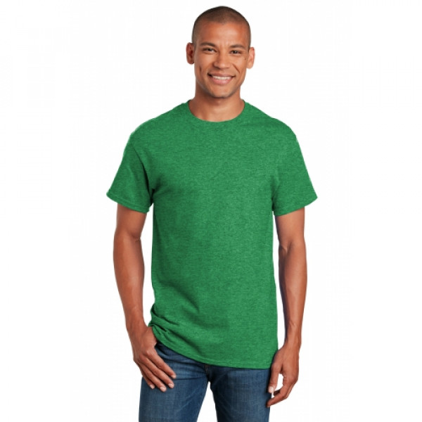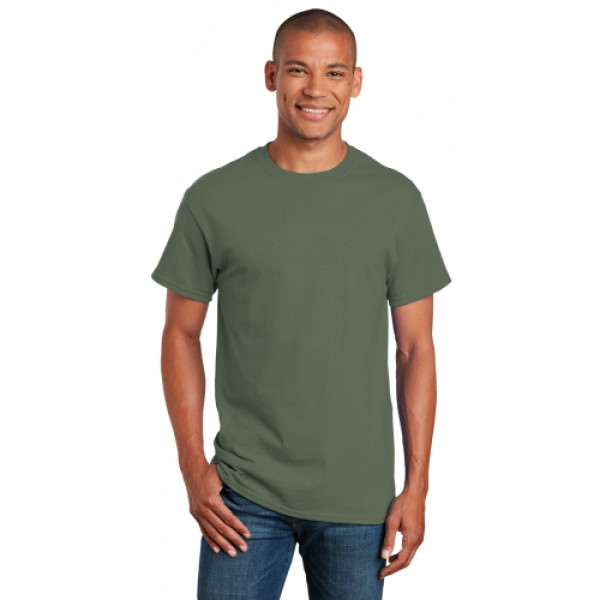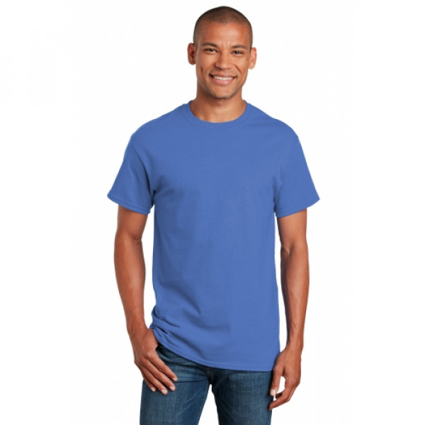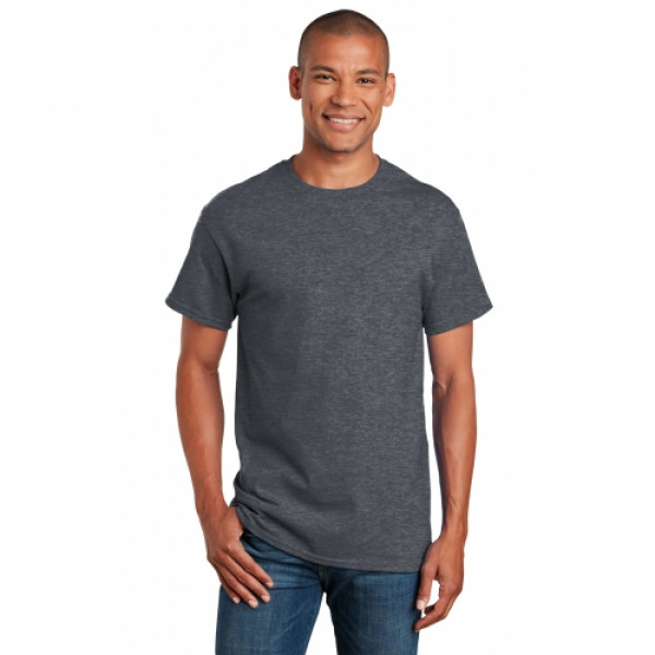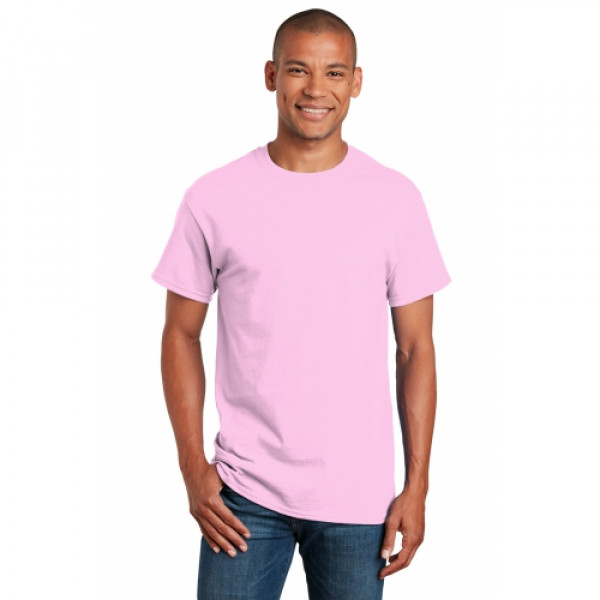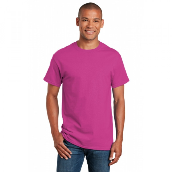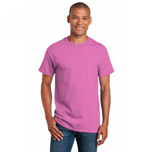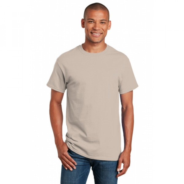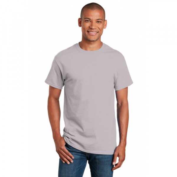 Nothing feels better than a 100% Gildan Ultra Cotton T-Shirt. It won't fade or shrink, so the shirt you buy today is the same tomorrow. Comes in 50 colors.::6.1 oz, 100% cotton::Double-needle sleeves and hem::Taped Neck and shoulders::Ash is 99/1 cotton/poly::Sport Grey is 90/10 cotton/poly::50/50 cotton/poly (Dark Heather, Safety Pink, Safety Green, Safety Orange, Heathered Cardinal, Heathered Indigo, Heathered Navy, Heathered Sapphire)::90/10 cotton/poly (Sports Grey, Antique Cherry Red, Antique Irish Green, Antique Royal)