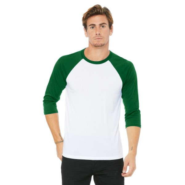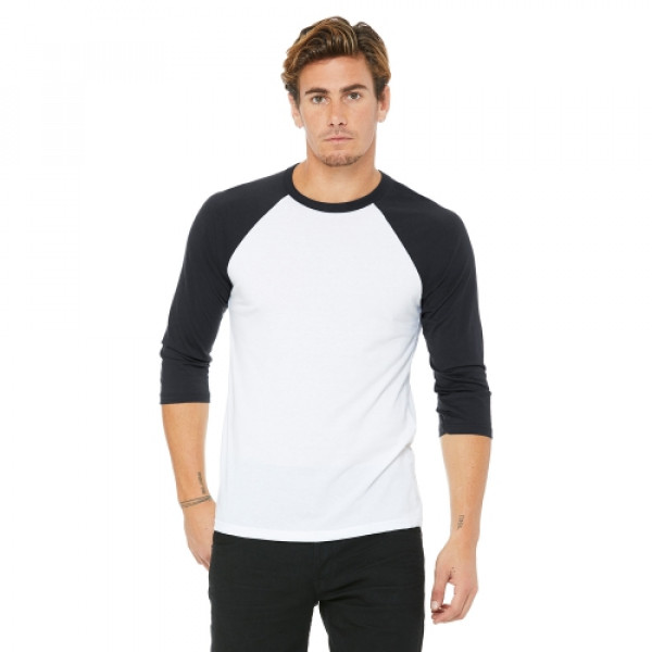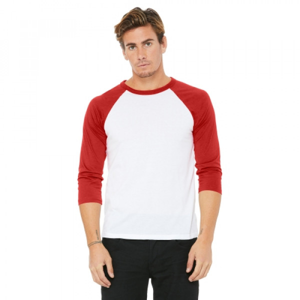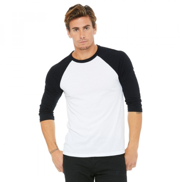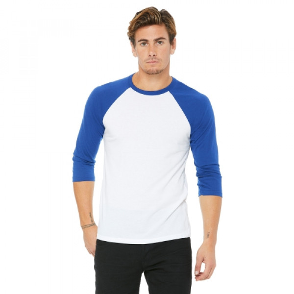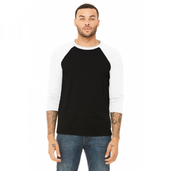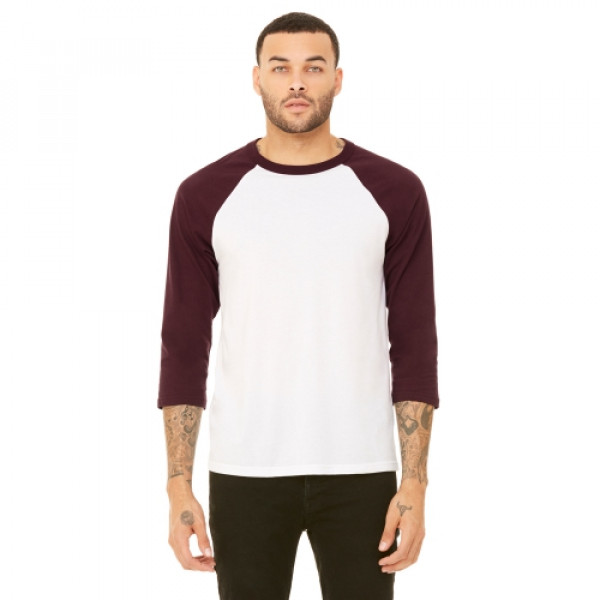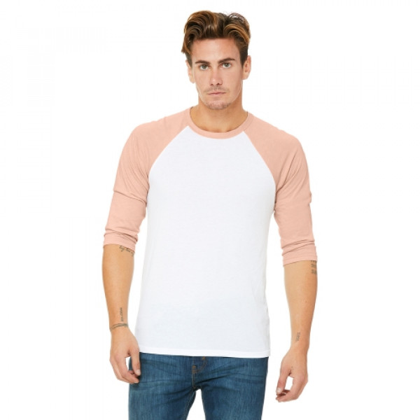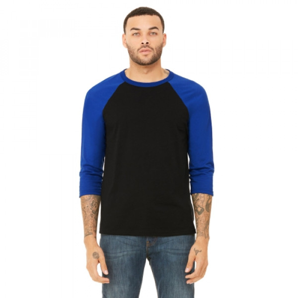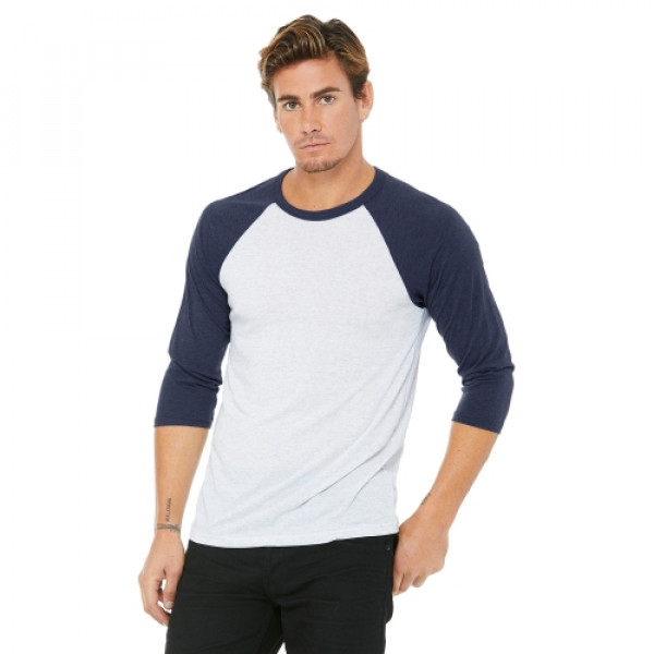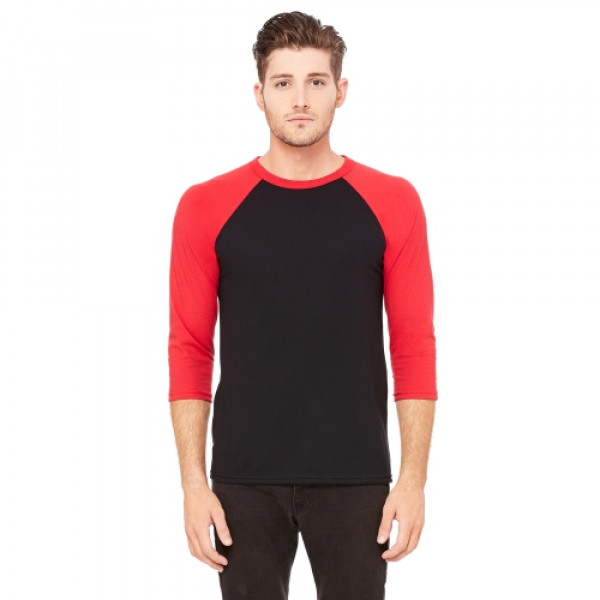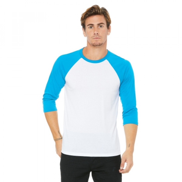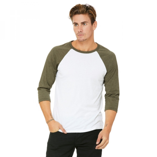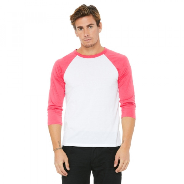 Fabric:::3.6 oz., 52% combed and ringspun cotton, 48% polyester; 40 singles::Triblends - 3.8 oz., 50% poly, 25% combed ringspun cotton, 25% rayon, 40 singles::Marble colors are 4 oz., 91% polyester, 9% combed ringspun cotton, 30 singles::Neon colors are 3.6 oz., 52% combed ringspun cotton, 48% polyester, 40 singles::SideseamedFeatures:::Contrast raglan sleeves and neck trim::Unisex sizing; retail fit::Disclaimer: neons are brighter than they appear online