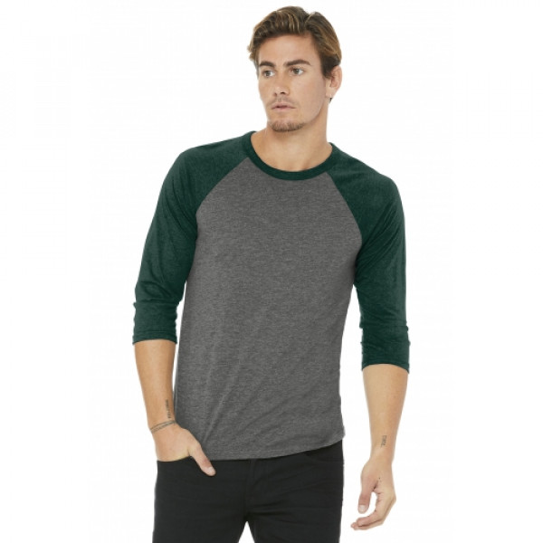::Retail fit::Tear-away label::Contrast raglan sleeves and neck trim::Side seamed::Solid Colorblock: 3.6-ounce, 52/48 Airlume combed and ring spun cotton/poly, 40 singles::Black Heather: 90/10 Airlume combed and ring spun cotton/poly::Marble Colorblock: 4-ounce, 91/9 poly/Airlume combed and ring spun cotton, 32 singles::Triblend Colorblock: 3.8-ounce, 50/25/25 poly/Airlume combed and ring spun cotton/rayon, 40 singles