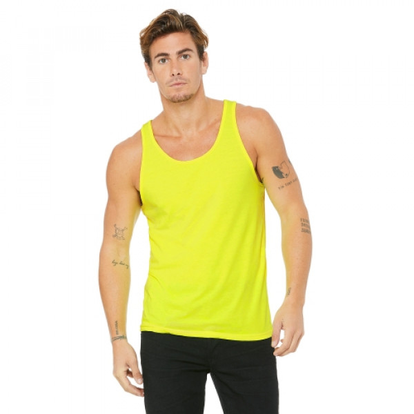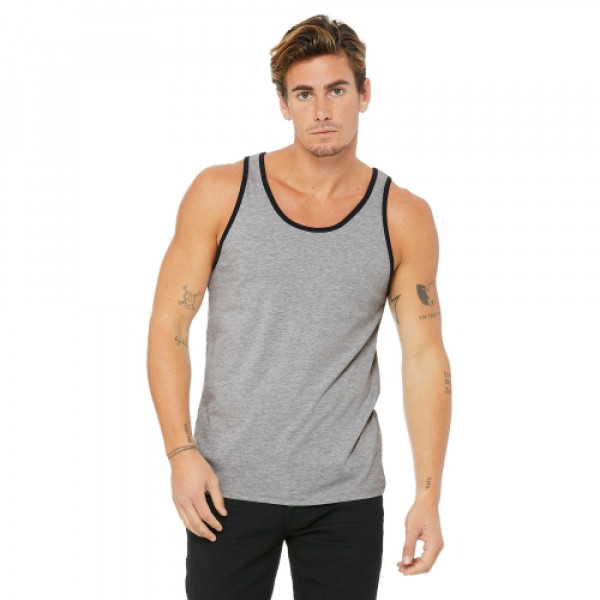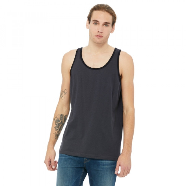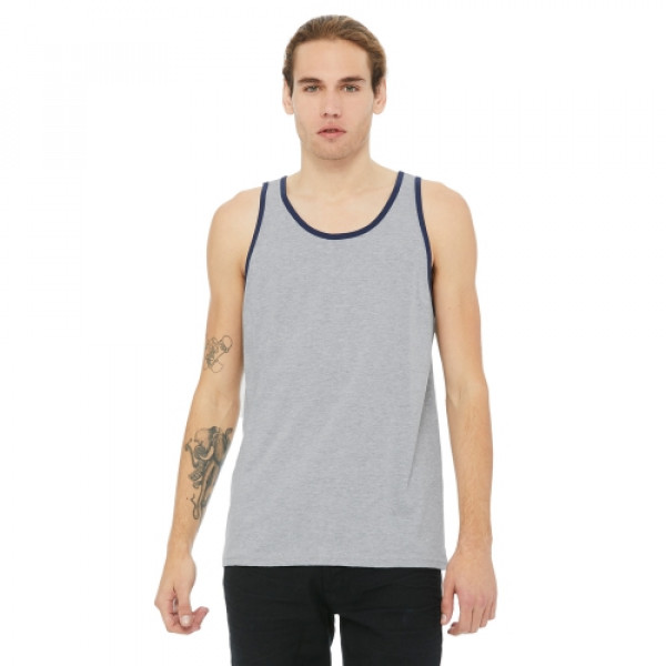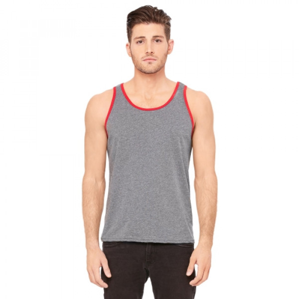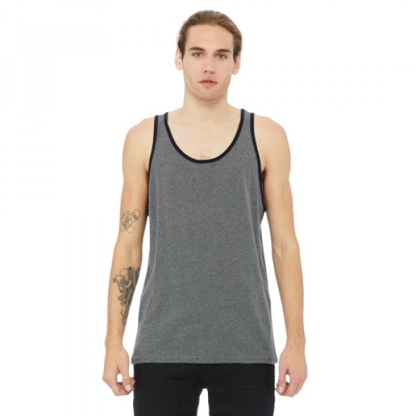 Fabric:::4.2 oz., 100% combed and ringspun cotton; 30 singles::Ash is 99/1 combed ringspun cotton/poly; Athletic Heather is 90/10::Dark Grey Heather is 52% combed and ringspun cotton, 48% polyester::Triblends - 3.8 oz., 50 poly, 25% combed ringspun cotton, 25% rayon, 40 singles::Neon colors are 3.6 oz., 52% combed ringspun cotton, 48% polyester, 40 singlesFeatures:::Available in two-tone color options::Unisex sizing; retail fit; sideseamed::Tear-away label