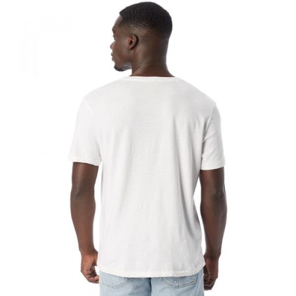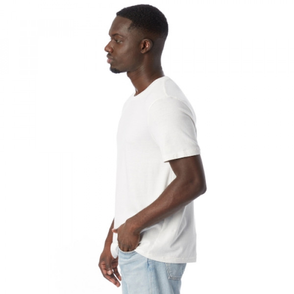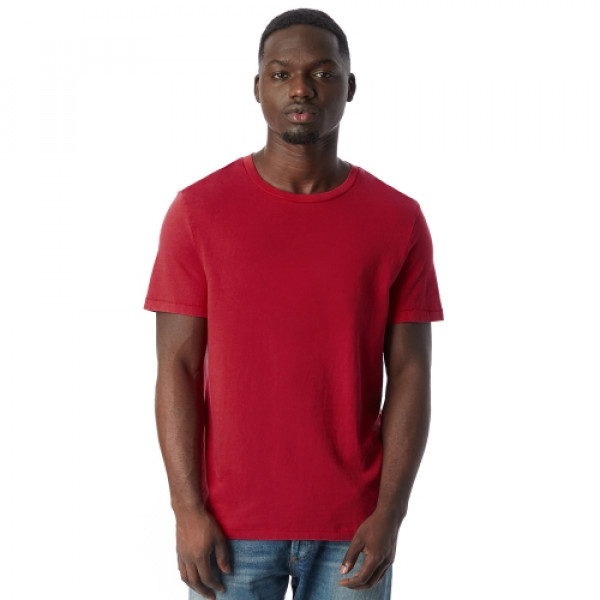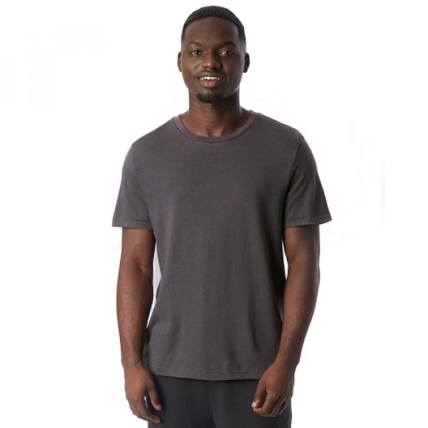 Fabric:::5.01 oz.::100% cotton::Heavy wash jersey::Pre-shrunkFeatures:::Rib collar::Satin label