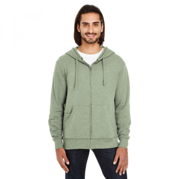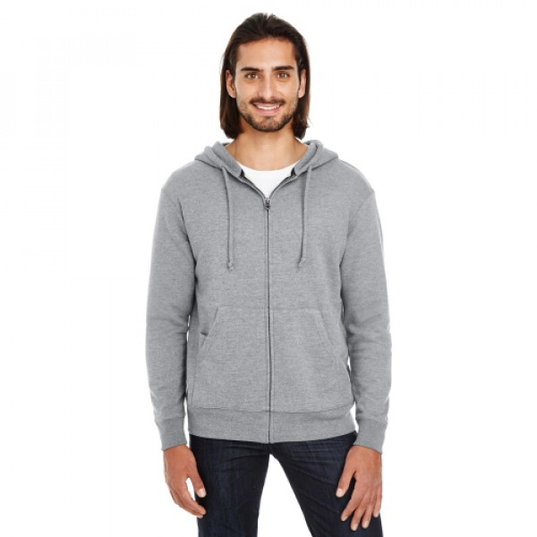 ::8 oz., 55% polyester, 35% combed ringspun cotton, 10% rayon::Washed french terry with smooth surface::Dyed-to-match drawstring::Retail fit::Unisex sizing::Pouch pockets with phone slot::3 panel fully lined hood::YKK print friendly covered zipper