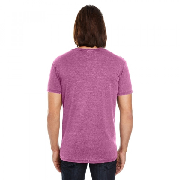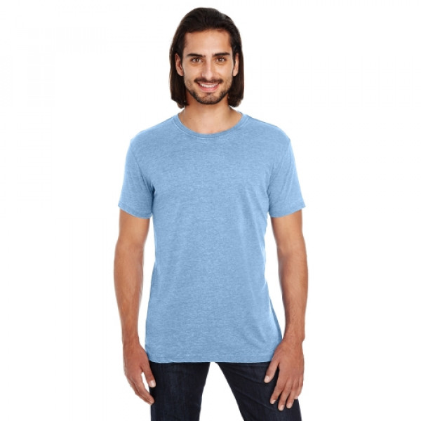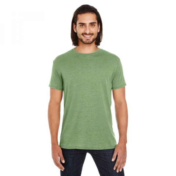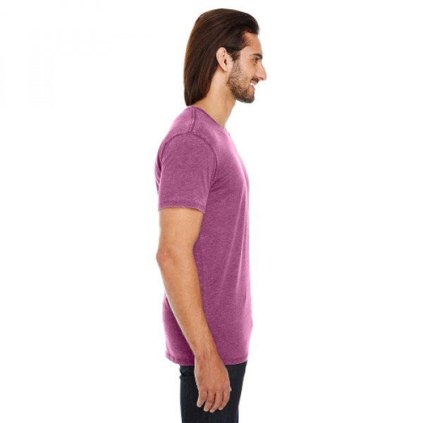 ::4.3 oz., 60% combed ringspun cotton, 40% polyester::6.97 oz./lin. yd., 60% combed ringspun cotton, 40% polyester::Garment dyed and fabric washed::Slightly distressed at neckline and hem::No two garments are exactly the same::32 singles::Retail fit::Side-seamed::Tear away label