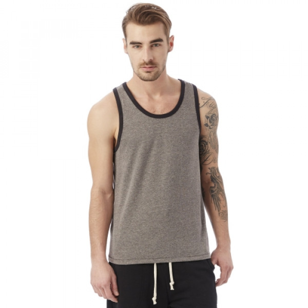 Fabric:::4.9 oz, 50% cotton, 50% polyester vintage jersey, 20 singlesFeatures:::Blind stitched hems::Contrast binding detail::Tear-away tag imported::Made in a WRAP certified factory