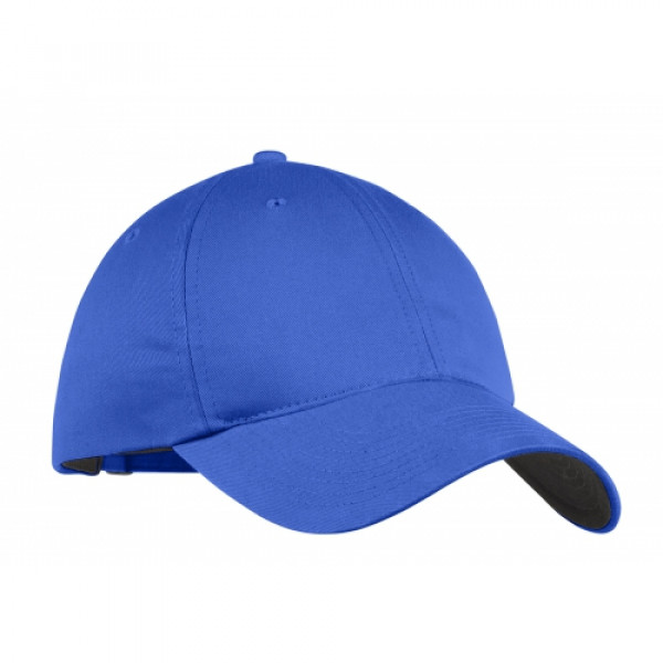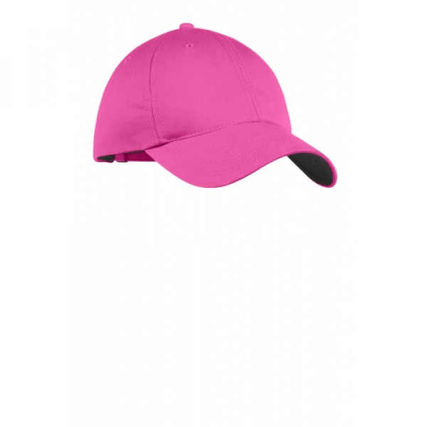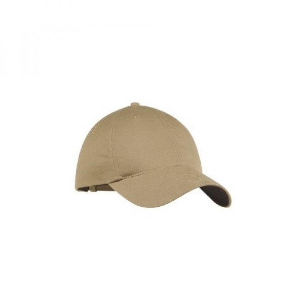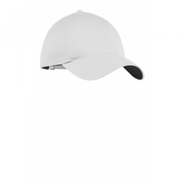 The Nike Unstructured Twill Cap has a perfect classic look with a contrast underbill. This cap has an unstructured mid-profile design and a self-fabric closure with buckle. The contrast Swoosh design trademark is embroidered on the center back. Made of 58/42 cotton/poly twill.