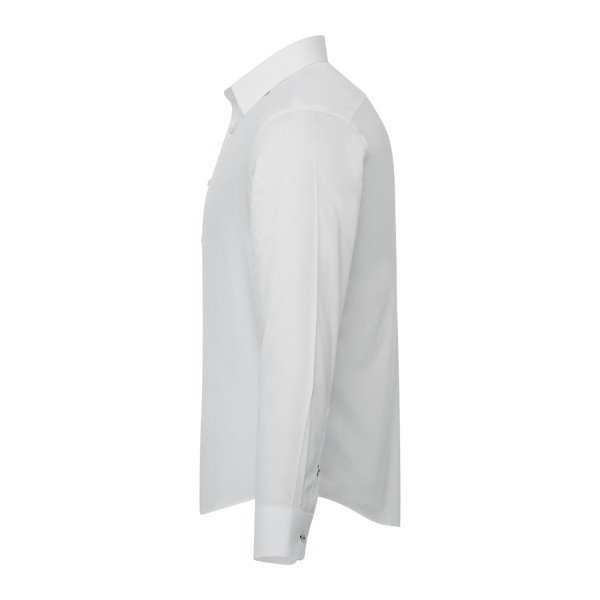 This luxury quality pearl white shirt has just the right splash of color to give it a sense of vibrant life. Put it on, and you'll know what it feels like to wear a cloud (heaven!).Details