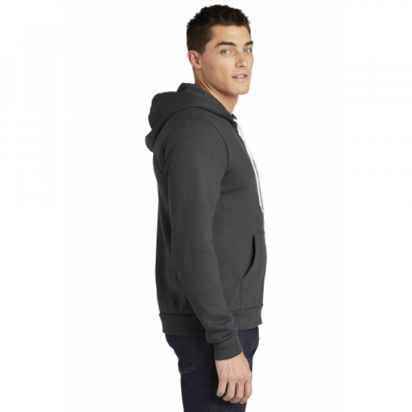 ::8.2-ounce, 50/50 poly/combed cotton fleece, 36 singles::Made in the USA of US and imported materials::Satin label::Metal zipper::Full-zip with white finished polyester drawcord and zipper tape::Kangaroo pockets::1x1 rib knit cuffs and hem::Classic fit
