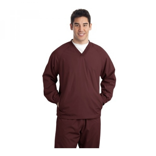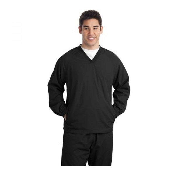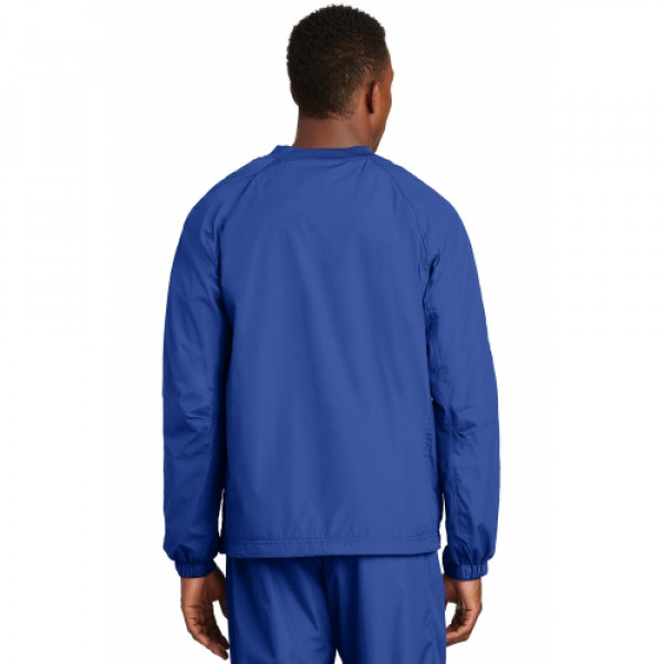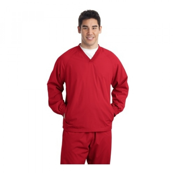 Cool windy days are no match for this soft wind shirt. Designed for adults and youth our windwear boasts simple lines a quiet hand and true team-oriented style.| 100% polyester Jersey lining with mesh insets at gussets for added breathability Rib knit v-neck collar Raglan sleeves Articulated elbows for greater mobility Half elastic half self-fabric cuffs for comfort Left side seam zipper for easy on/off Side pockets Drawcord hem with toggle