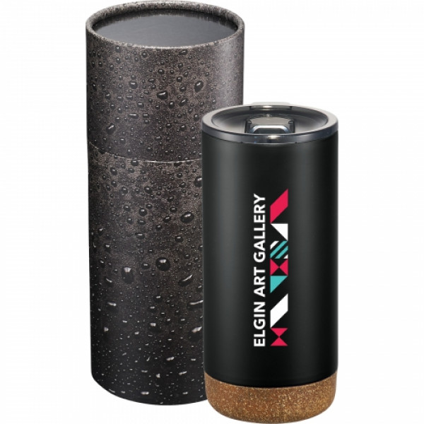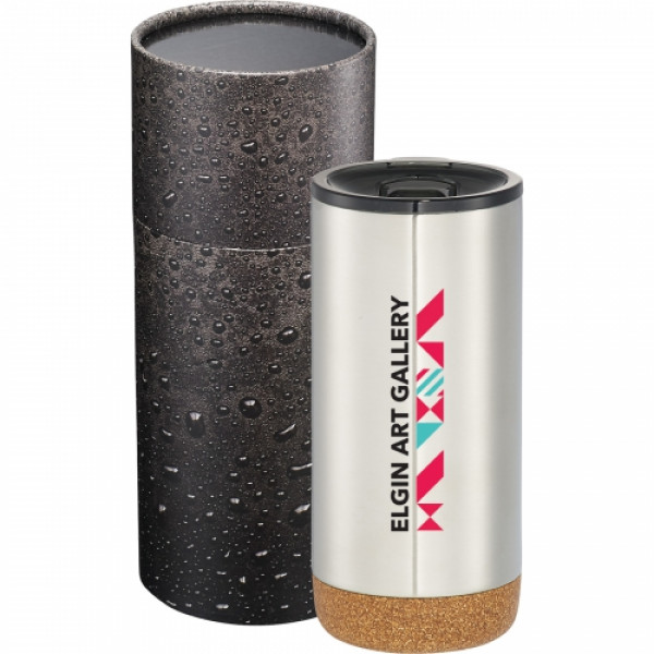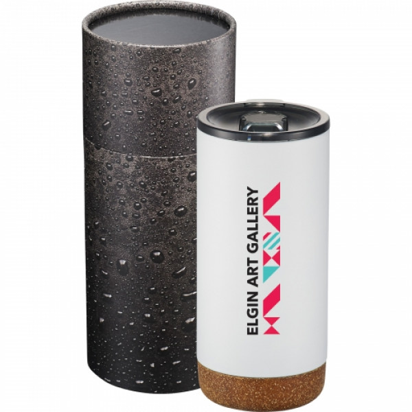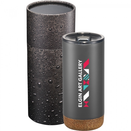 ::With the skid-proof cork look featured bottom design, your next promotion will be sure to stand out.::Durable, double-wall stainless steel vacuum construction with copper insulation, which allows your cold beverage to stay cold for 24 hours and at least 8 hours for hot beverages. ::The construction also prevents condensation on the outside of the piece. ::Fits most standard car cup holders. 16oz.