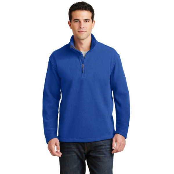 You will appreciate the comfort (and the value) of this soft pullover all year round.::13.8-ounce, 100% polyester::Twill-taped neck::Reverse coil zipper::Chin Guard::Bungee cord zipper pull::Open cuffs::Open hem with drawcord and toggles for adjustability