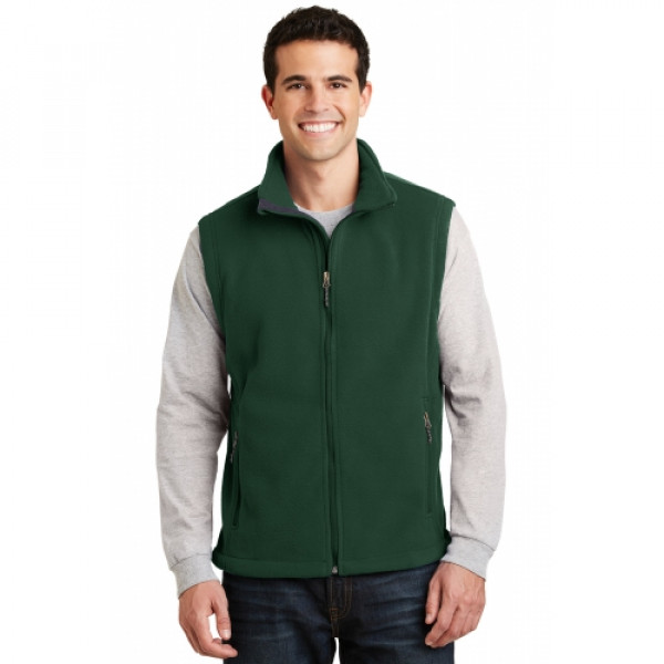 Ready for layering, this super soft, midweight fleece vest offers great warmth at a great price.::13.8-ounce, 100% polyester::Twill-taped neck::Reverse coil zipper::Chin guard::Knotted zipper pulls::Tricot-lined armholes::Front zippered pockets::Open hem with drawcord and toggles for adjustability