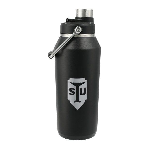 The construction also prevents condensation on the outside of the bottle. On-trend, durable powder coating. Dual opening, screw-on, stainless steel cap on the main lid. Also features a built-in, durable, metal handling loop. Wide opening for comfortable filling and pouring. Perfect for ice cubes. 40oz.Details