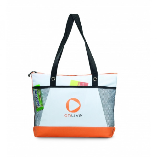 Tote your brand with style using this versatile and modern bag, perfect for everyday errands, events, or giveaways. With a spacious main compartment, multiple storage options, and stylish grommet details, it’s designed for both function and appeal. This tote also makes a fantastic promotional product that can be custom decorated or branded to showcase your logo in a memorable way.
