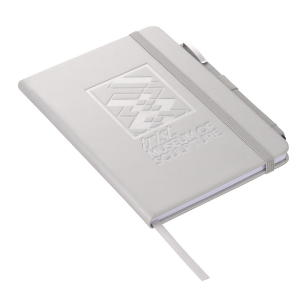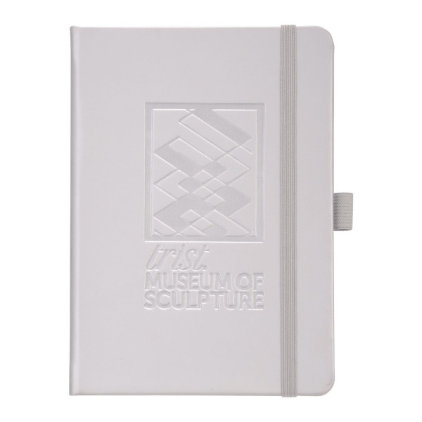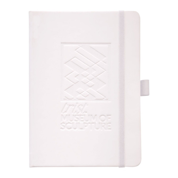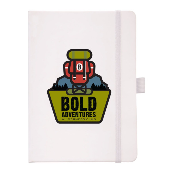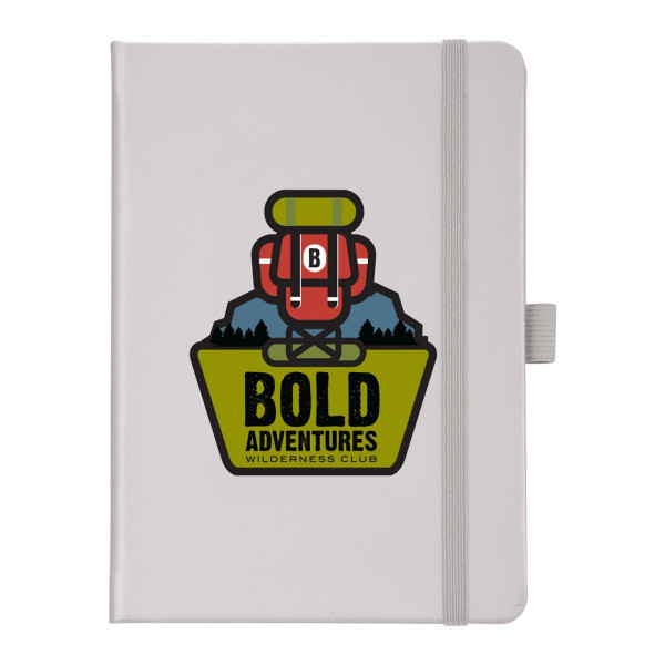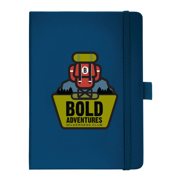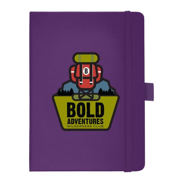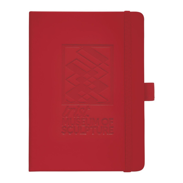 The 5'' x 7'' FSC® Mix Vienna Hard Bound Journal is a soft touch, hard cover bound journal with built-in elastic closure. This custom notebook features a color-matching elastic pen loop and ribbon page marker. The 5'' x 7'' FSC® Mix Vienna Hard Bound Journal includes 72 sheets of FSC® Mix white lined paper.