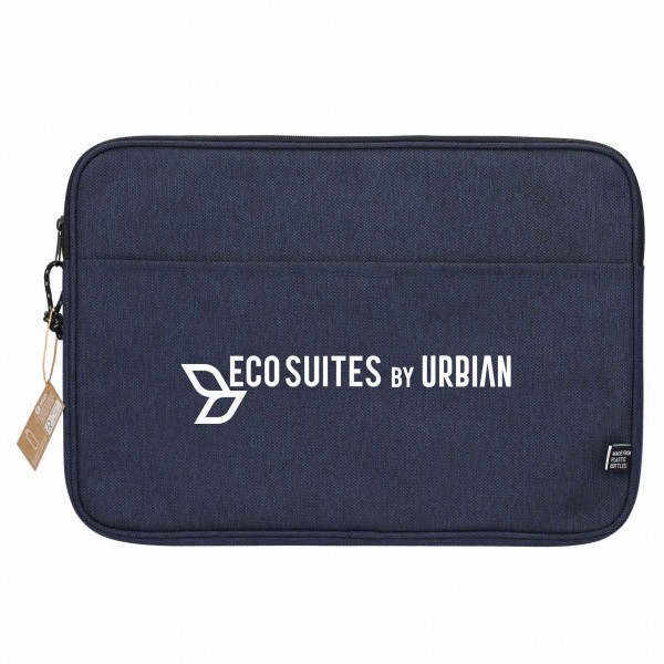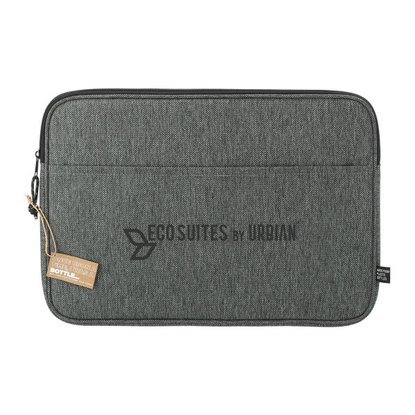 Stay stylish and eco-friendly with this recycled computer sleeve, designed to fit laptops up to 15 inches. Made from 100% recycled plastic water bottles, it offers a zippered main compartment and a front pocket with a hook-and-loop closure for added storage. A great choice for those seeking both functionality and sustainability.