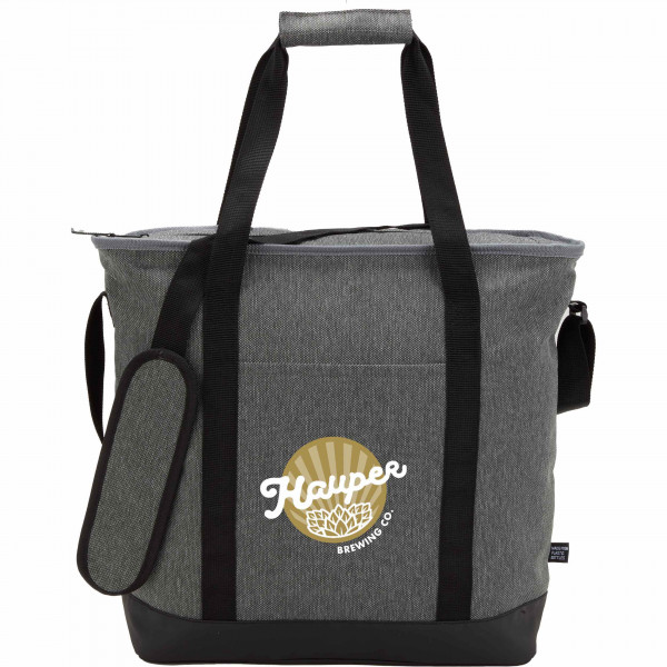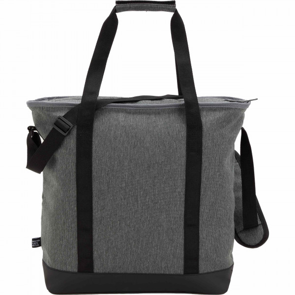 The Vila Recycled 30 Can Cooler Tote combines on-trend style with sustainable materials. Made using rPET fabric, this cooler features an adjustable, padded shoulder strap, carry handles with a padded grip, zippered main compartment, side water bottle pocket, and a front slash pocket for easy storage.
